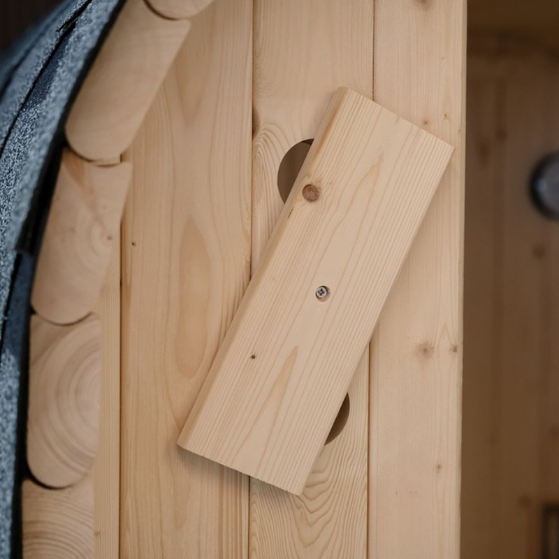 Die Glastür aus Sicherheitsglas (ESG) sorgt für einen eleganten Zugang zur Sauna und erhöht den Komfort. Zwei integrierte Luftlöcher garantieren eine optimale Luftzirkulation, sodass ein angenehmes Raumklima entsteht. Während die Außenschicht der Sauna kühl bleibt, wird die Wärme im Inneren konstant gehalten.