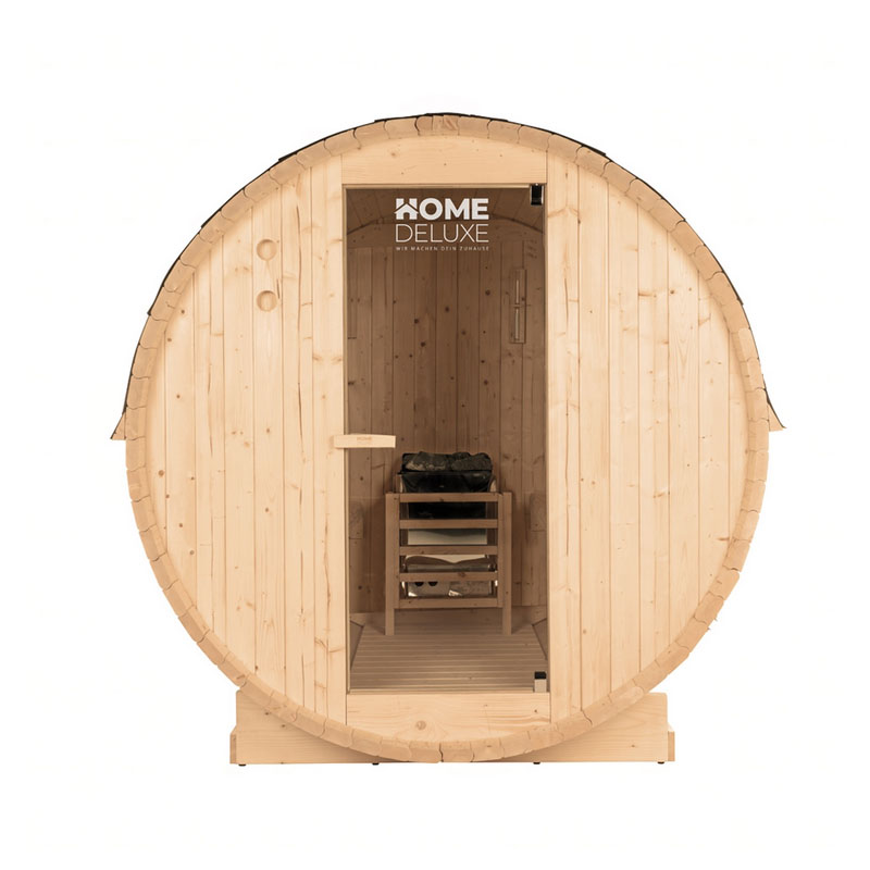 Das Herzstück dieser traditionellen Outdoor-Fasssauna ist der leistungsstarke 6 kW Saunaofen. Dank der einzigartigen Fassform kann Wärme und Luft optimal zirkulieren, was zu einem gleichmäßigen Raumklima führt. So genießen Sie bei idealen Bedingungen angenehme Temperaturen zwischen 80 und 100 °C und können ausgiebige Aufgüsse durchführen.