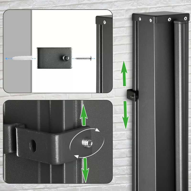 - Zwei Montage-Optionen: Befestigen Sie den Endpfosten entweder dauerhaft fest im Boden oder nutzen Sie den mitgelieferten Pfostenschuh. Letzterer ermöglicht es Ihnen, den Pfosten mit einem Handgriff zu entnehmen – ideal, wenn Sie die Markise im Winter platzsparend lagern möchten.