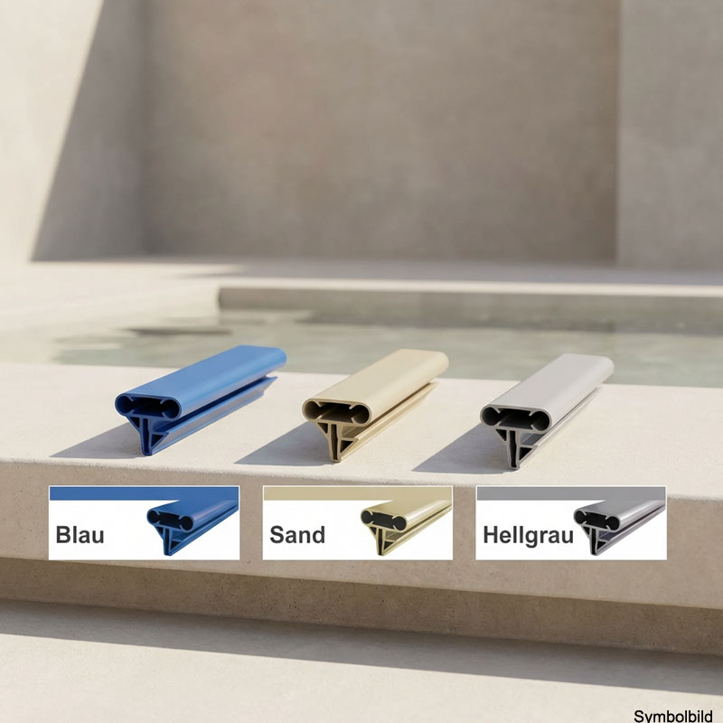 - PVC-Kombi bzw. Standard Handlauf blau, grau, oder sand (abhängig von der Poolfolienfarbe)