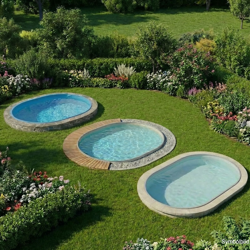 Eingebaute Becken müssen zusätzlich mit Magerbeton hinterfüllt werden. Auf beiden langen Seiten wird beim Ovalpool vorab noch eine Stützmauer benötigt.