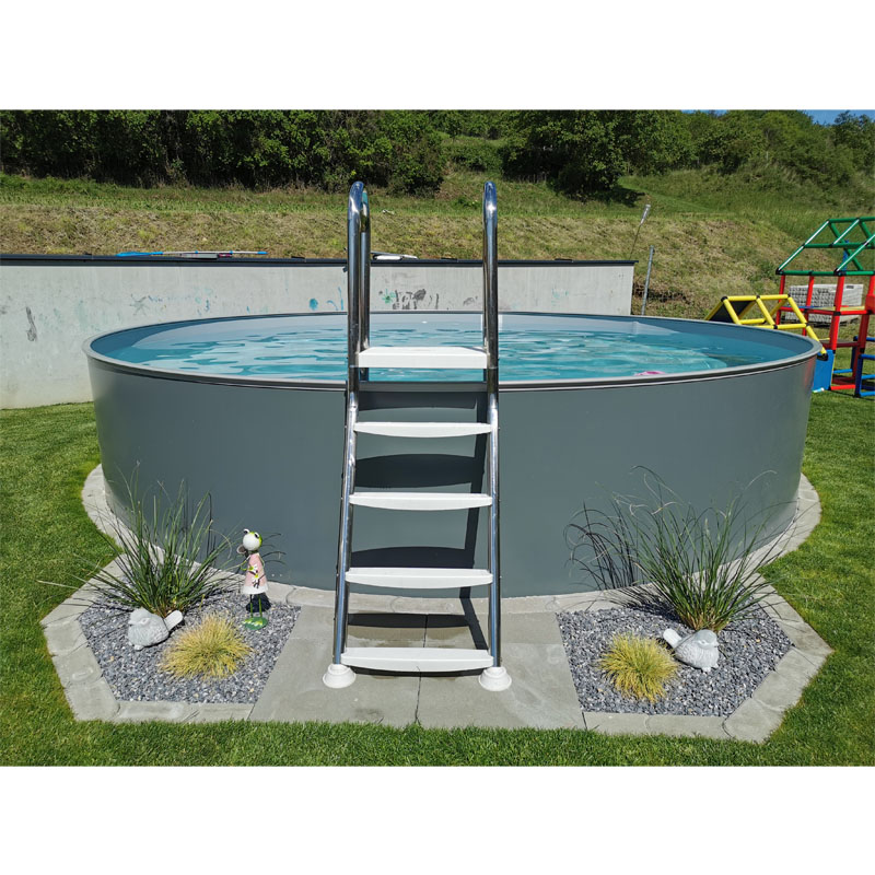 Stahlwandpool Rund Grigio Anthrazit mit grauer Poolfolie