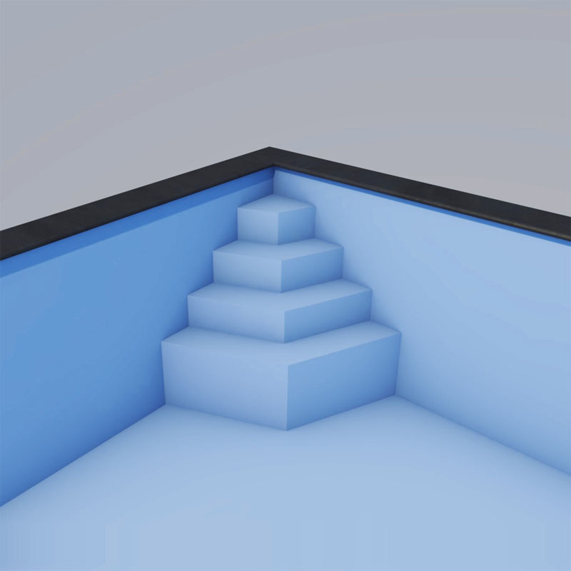 Fertigungsbedingt kann die Poolfolie im Bereich der Treppe nicht mit 90° Ecken produziert
