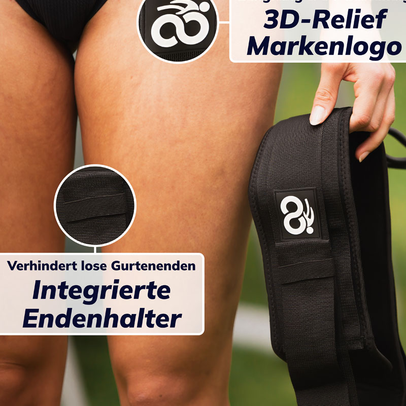 Dank der V4A-Edelstahlkomponenten ist der Gurt sehr robust. Wir empfehlen lediglich, das System nach dem Schwimmen kurz mit Leitungswasser abzuspülen und in der mitgelieferten, belüfteten Sporttasche trocknen zu lassen.