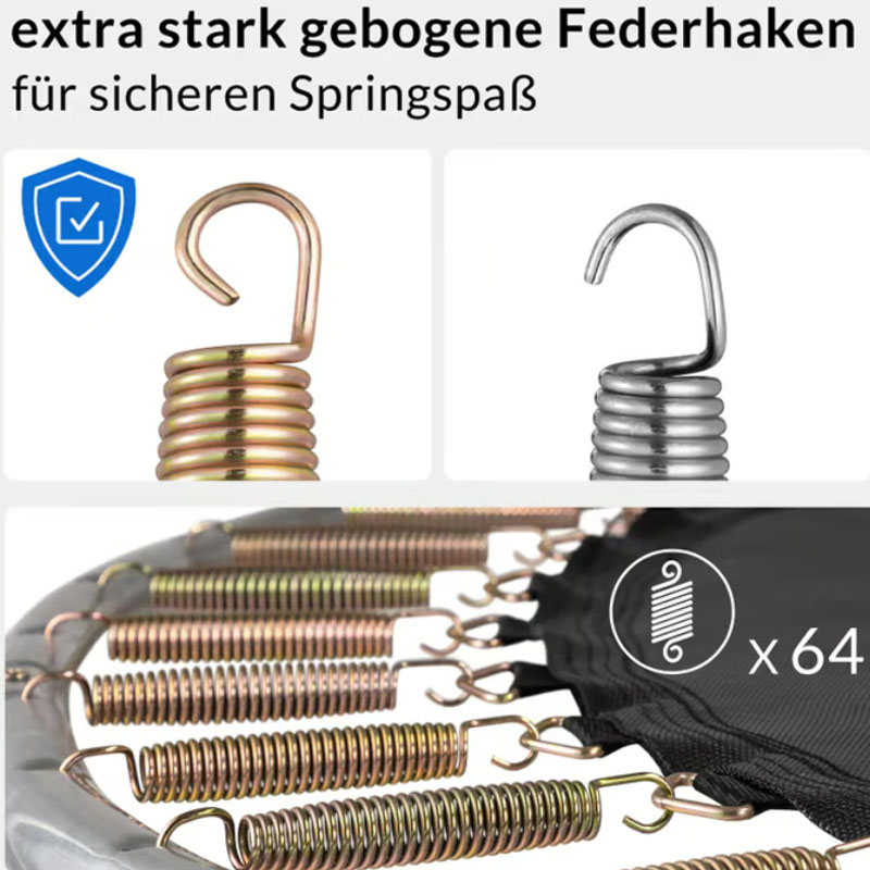 Das Trampolin mit Sicherheitsnetz ist die perfekte Wahl für alle, die ein sicheres, stabiles und hochwertiges Trampolin für den Garten suchen. Gönnen Sie sich und Ihren Kindern diesen Hüpfspaß und fördern Sie Bewegung und Koordination.