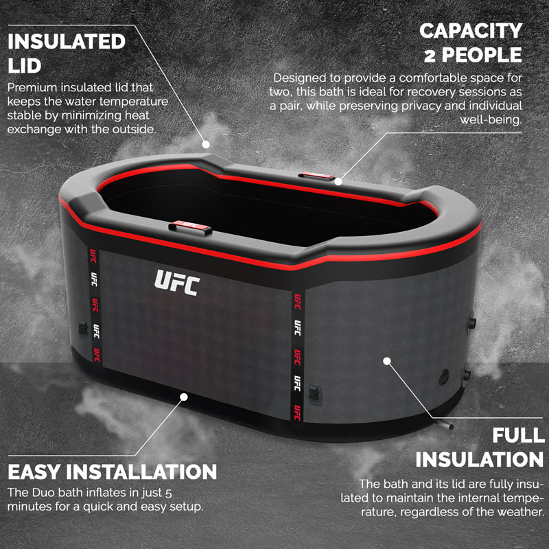 Die Poolspecial GmbH ist stolz darauf, Ihnen in Zusammenarbeit mit Netspa und der UFC das Ice Bath UFC Edition präsentieren zu dürfen. Dieses exklusive Produkt vereint die Expertise von Netspa, dem führenden Anbieter von Spas und Wellness-Produkten, mit dem ikonischen Design und den hohen Ansprüchen der UFC, der weltweiten Referenz im Kampfsport.