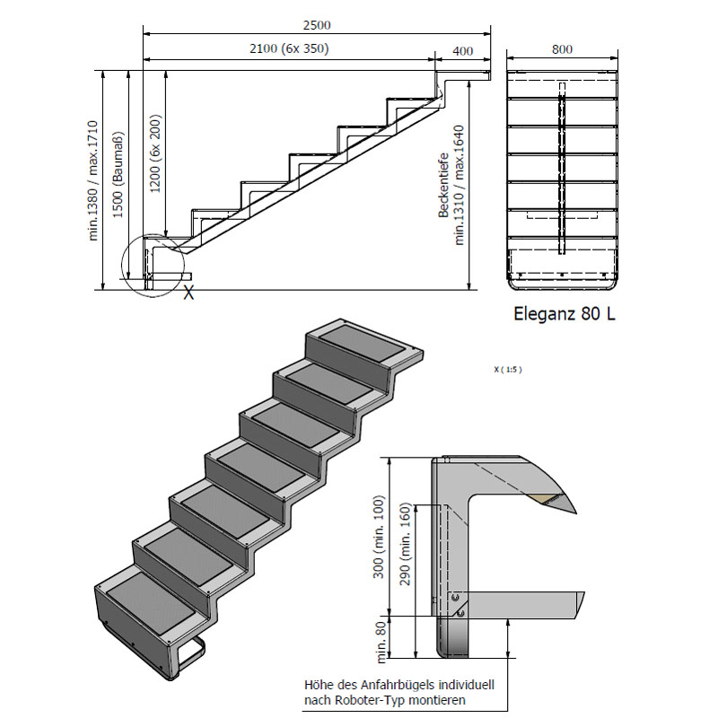 Universal Pooltreppe Eleganz 80 U Lang 6 Stufen