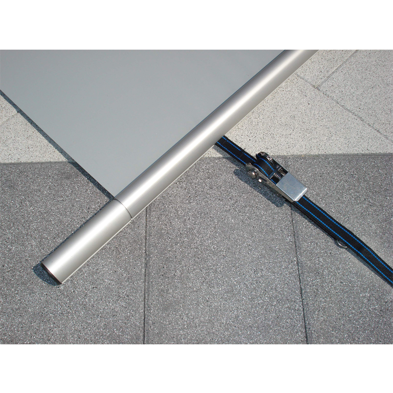 Die PVC Bahnen und die aus eloxiertem Aluminium bestehenden Stäbe sind austauschbar und können somit bei Bedarf vor Ort einzeln ausgetauscht werden.