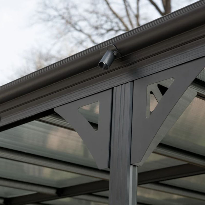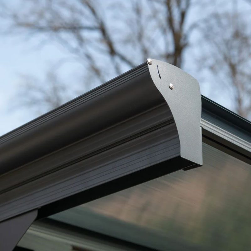 - UV-beständige Doppelstegplatten: Das 6 mm starke Dach schützt nicht nur vor Regen und Schnee, sondern auch vor UV-Strahlen – und lässt dabei angenehm viel Licht durch.