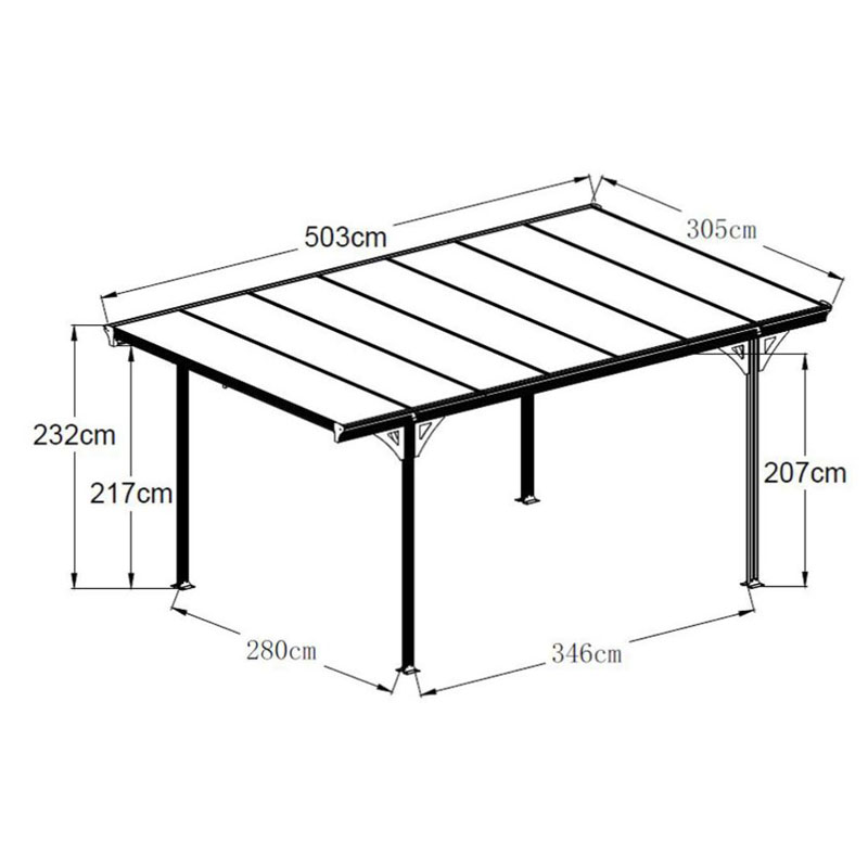 Aluminium Flachdach Carpot anthrazit 503 x 305 x 232 cm